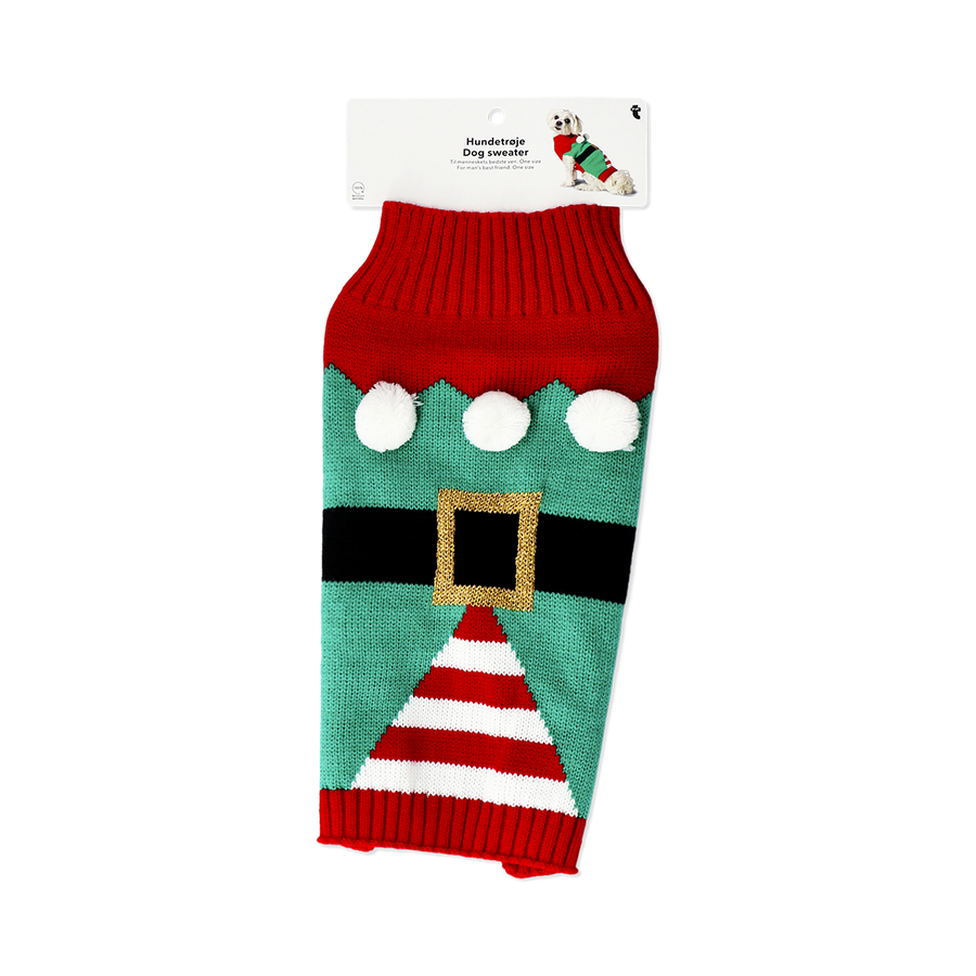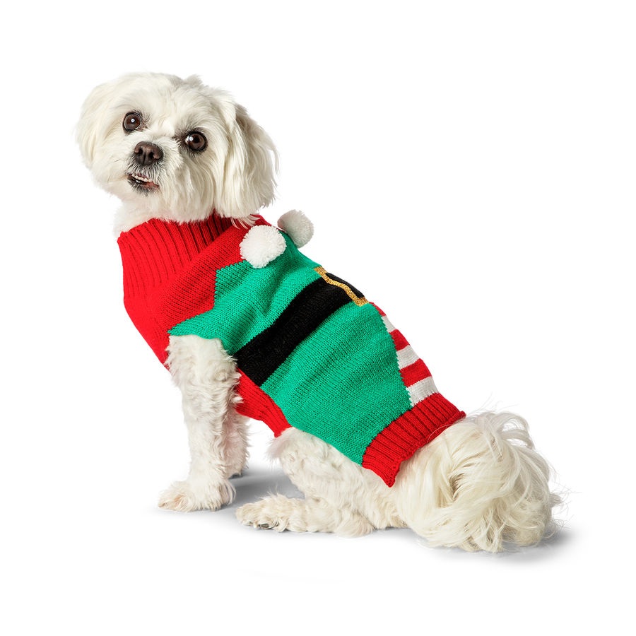 ニッセをイメージしたカラフルな犬用クリスマスセーター。