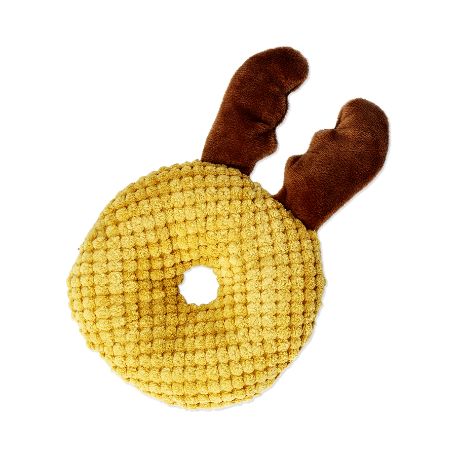トナカイをモチーフにしたドーナツ型の犬用ぬいぐるみおもちゃ。