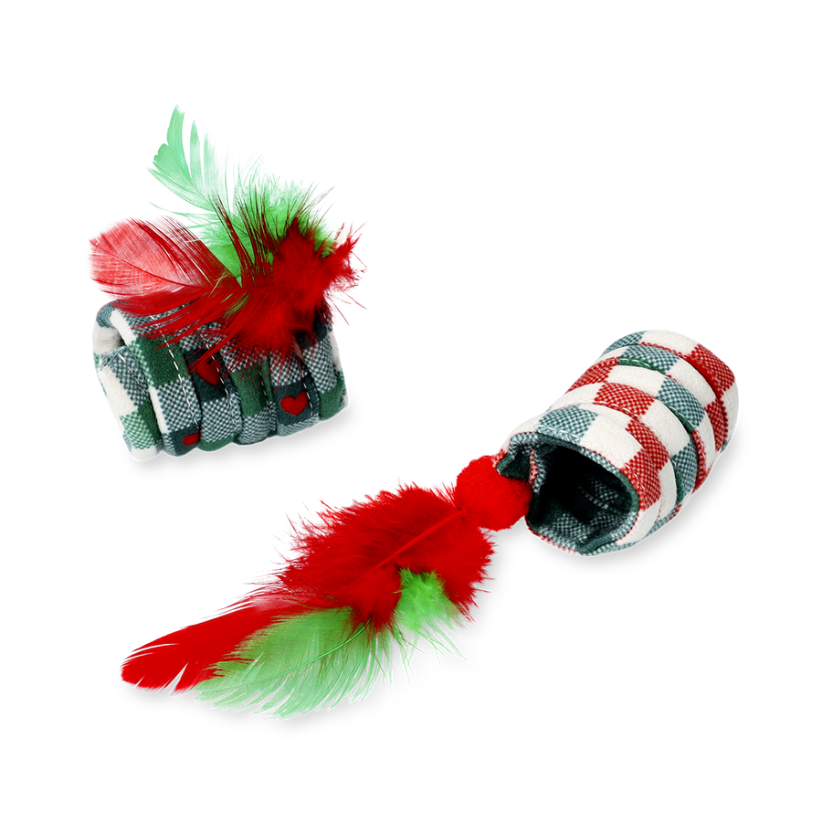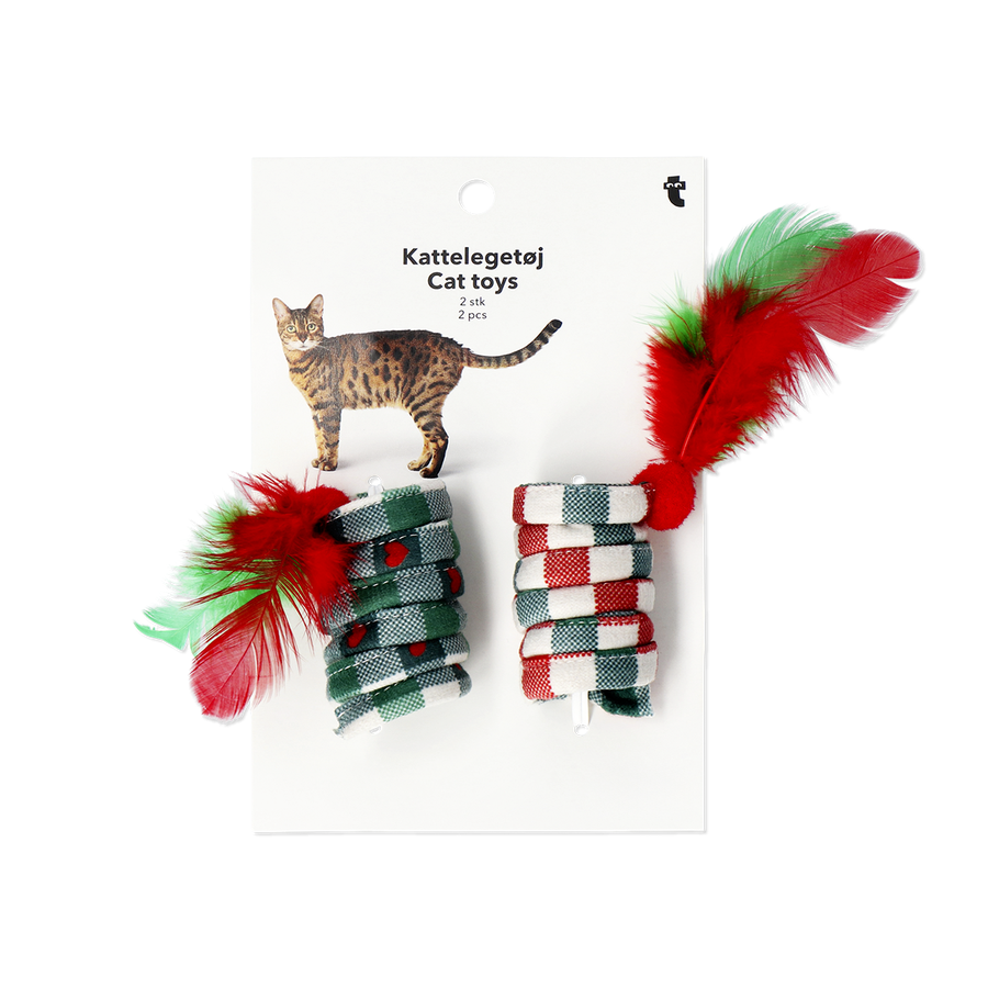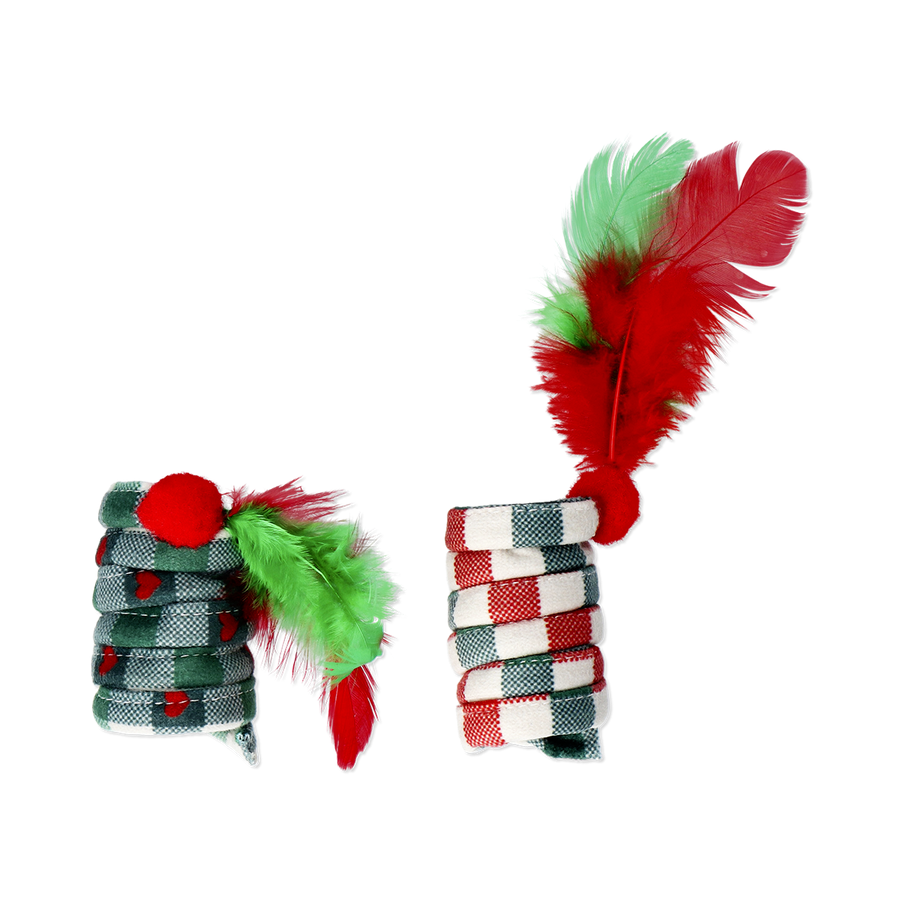 クリスマスカラーが可愛い、猫用スプリングおもちゃセット。