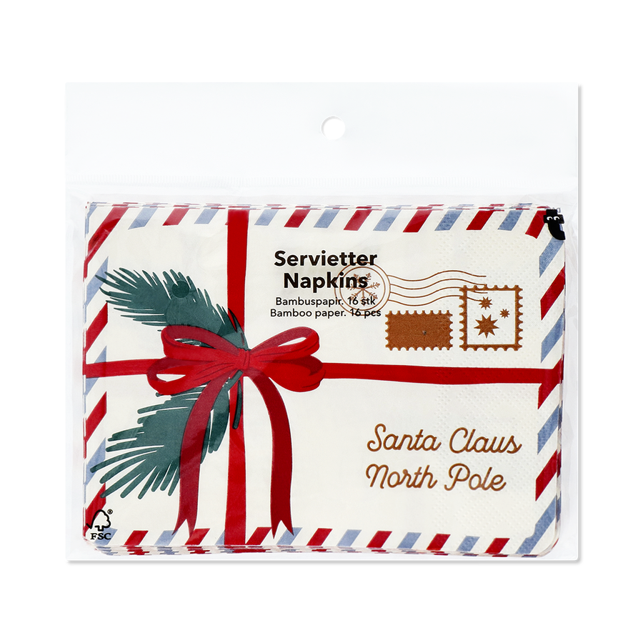 サンタ宛の手紙をモチーフにした、遊び心あふれるペーパーナプキン16枚セット。