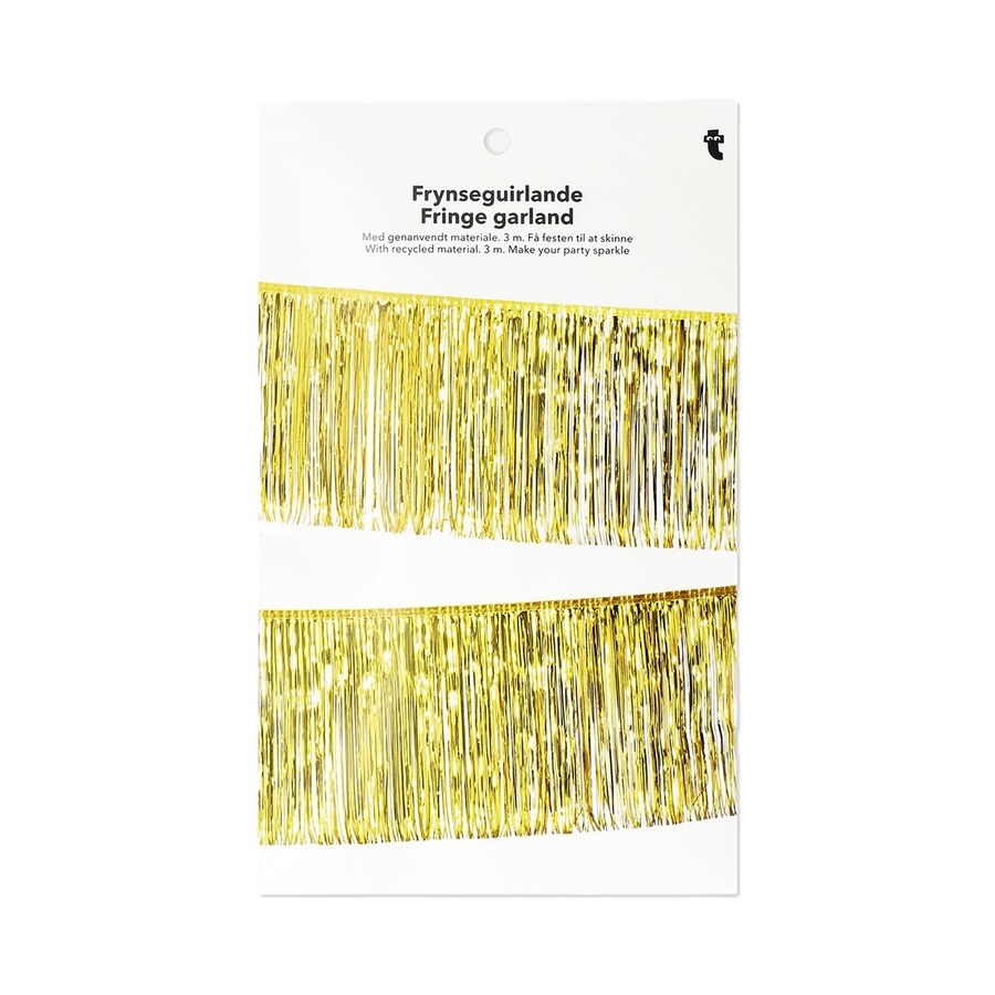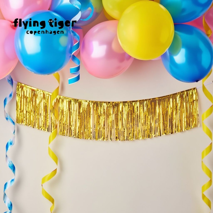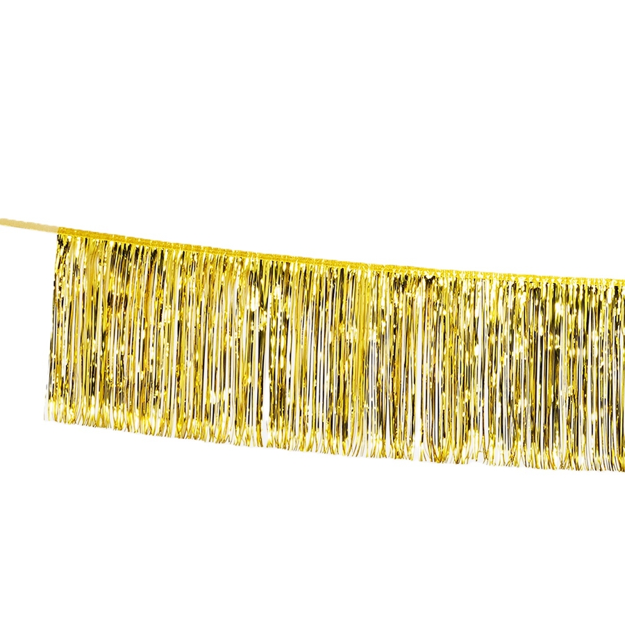 きらめくゴールドのフリンジガーランドで、目を引くパーティーの背景を作りましょう。