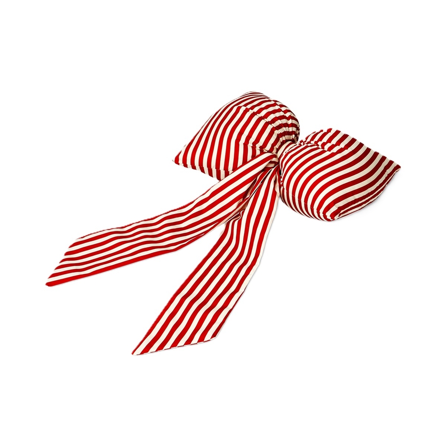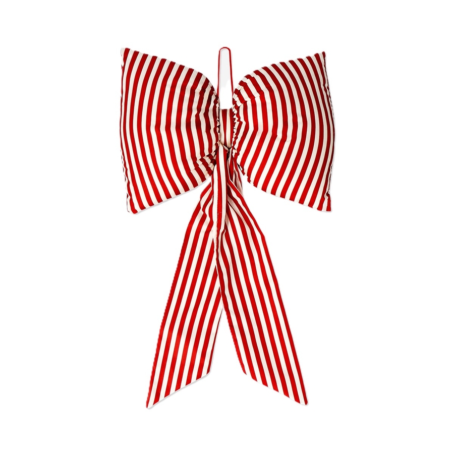 赤と白のストライプ柄が印象的な、吊り下げタイプのデコレーションリボン。