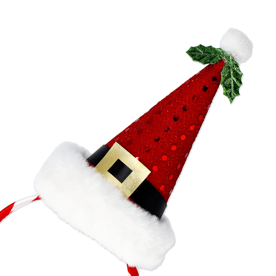 小さなサンタ帽がついた、大人向けのクリスマスカチューシャ。