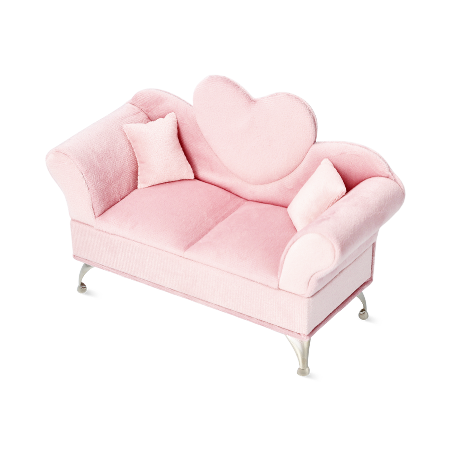 ピンクのハートソファをモチーフにしたジュエリーボックスで、ドレッサーにロマンチックなアクセントを。