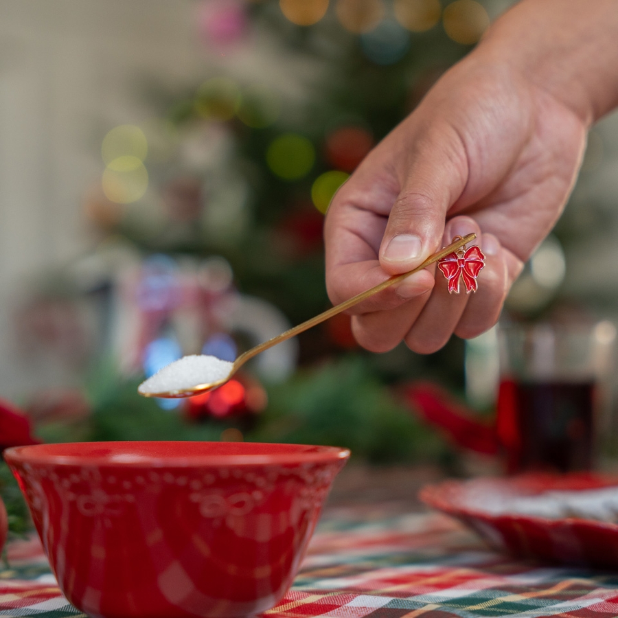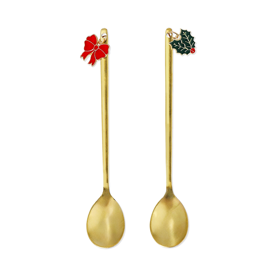 クリスマスをテーマにしたチャーミングなトッパーが付いたゴールドのスプーン2本セットで、食卓に華やかな雰囲気を添えましょう。片方のスプーンにはヒイラギのモチーフ、もう片方には華やかなリボンがあしらわれ、季節のカトラリーに彩りを添えます。サイズは0.2×14×2.5cmで、食品に対応しています。クリスマスシーズンには、温かい飲み物をかき混ぜたり、デザートに使うのに最適です。実用性とホリデーシーズンの雰囲気を兼ね備えたこのデコレーションスプーンは、キッチンや華やかなテーブルセッティングに遊び心と洗練されたディテールを添えます。食洗機NG、電子レンジNG、オーブンNG、冷凍庫NG。