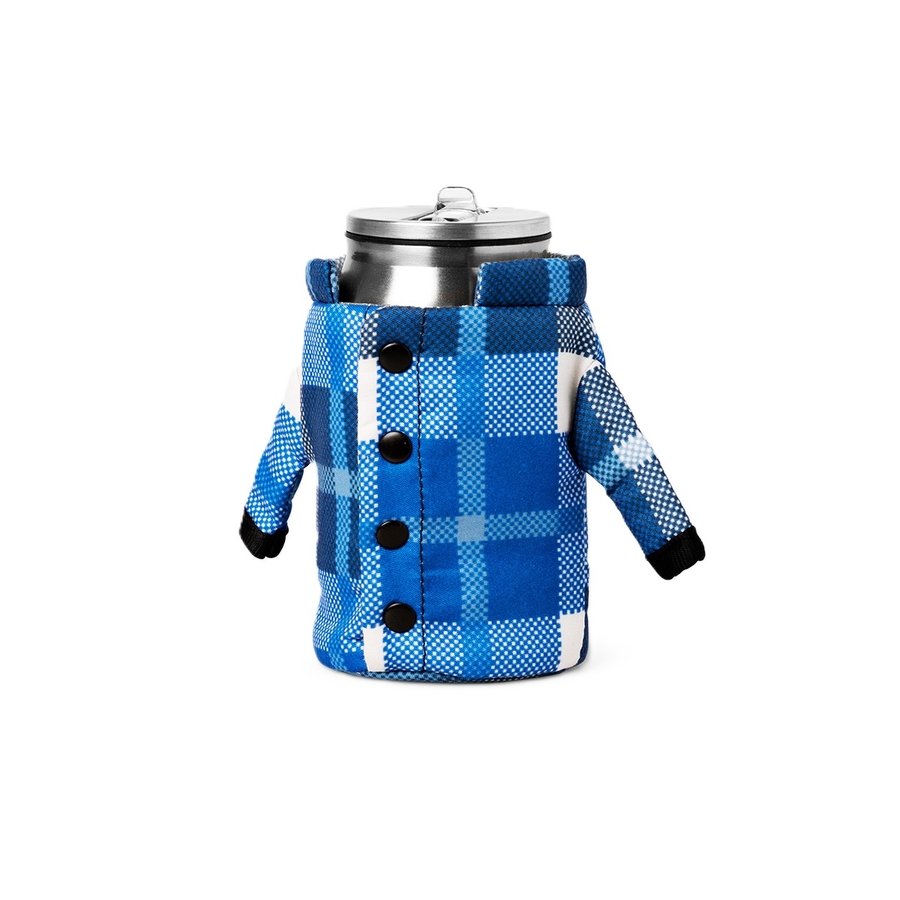 カラフルなチェック柄が楽しい、カップ用のウィンタージャケットスリーブ。