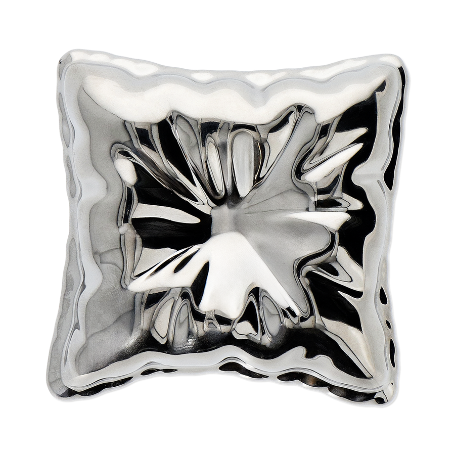 ふっくらとしたクッションのような形が印象的な、シルバーのセラミックトレー。