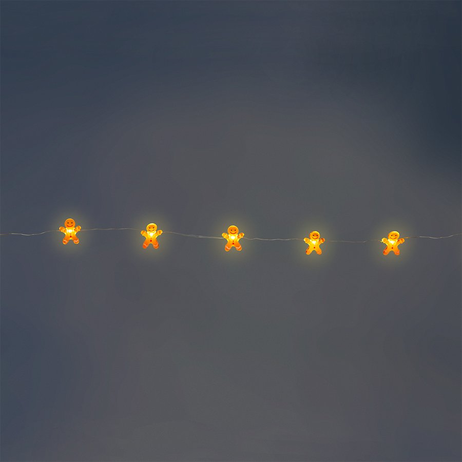 ジンジャーブレッドマンが並ぶ、かわいらしいLEDライトチェーン。