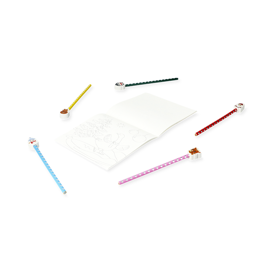 サンタやペンギン、ジンジャーブレッドなど、かわいいイラストがいっぱいのクリスマスぬりえセット。