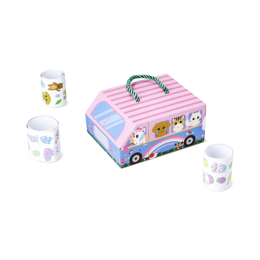 かわいい動物たちのイラストがいっぱいのロールステッカーセット。