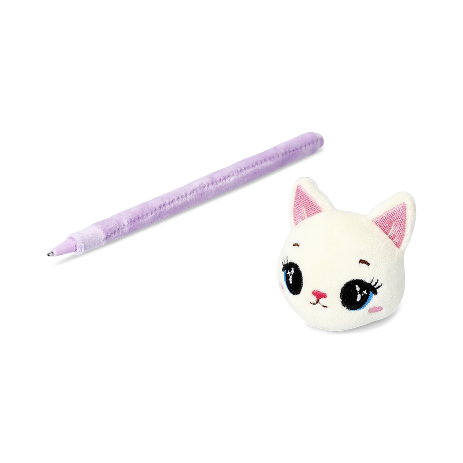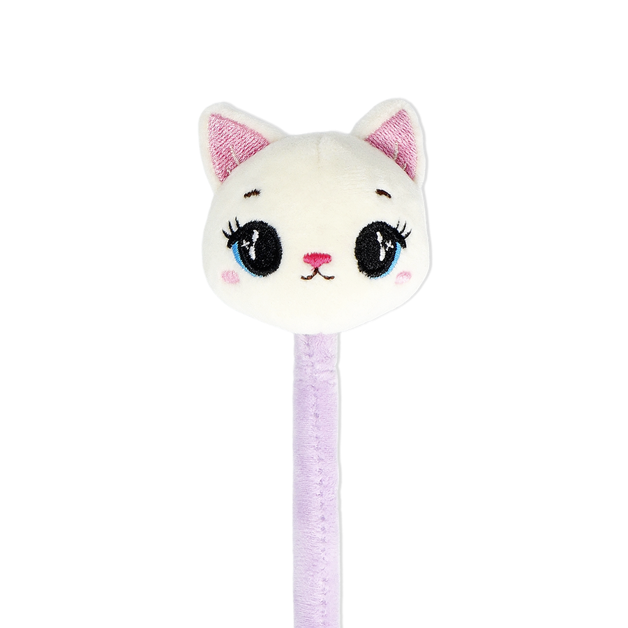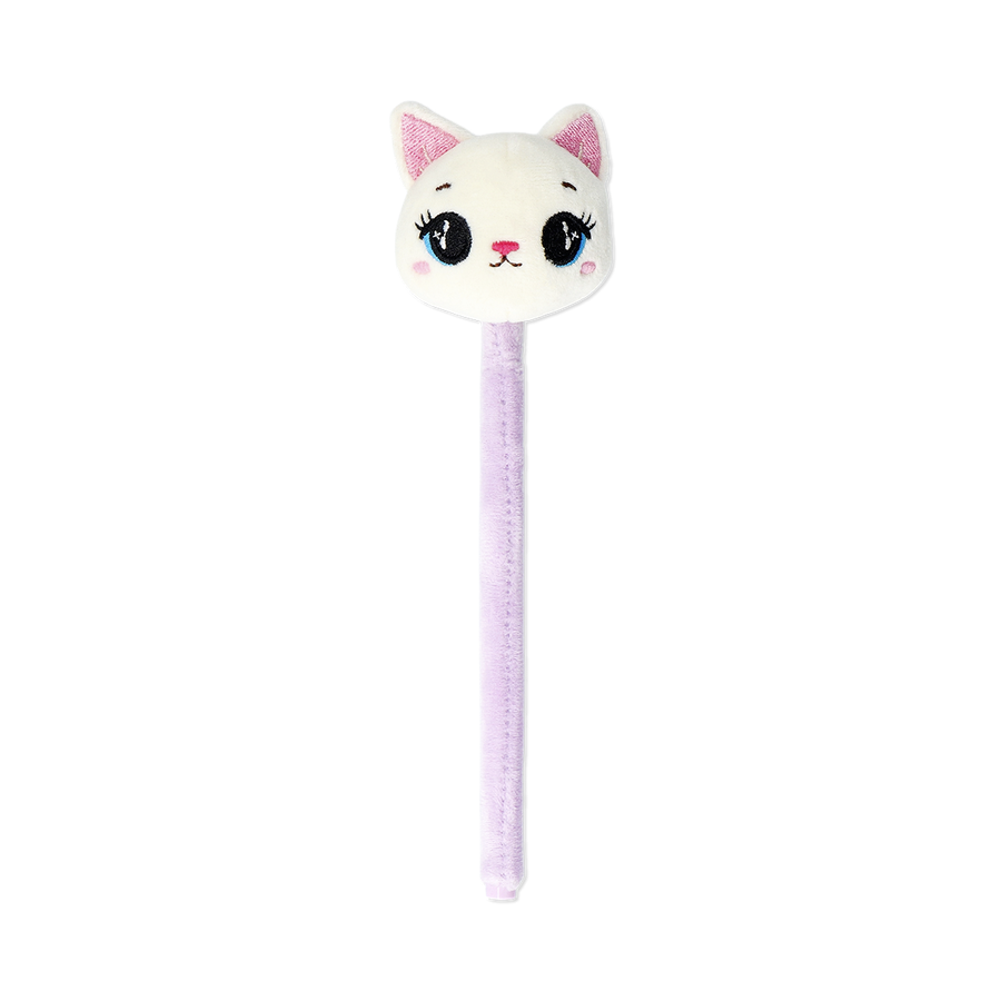 ふわふわの猫モチーフがかわいい、ぬいぐるみ付きボールペン。