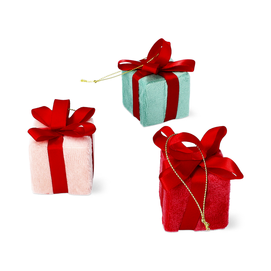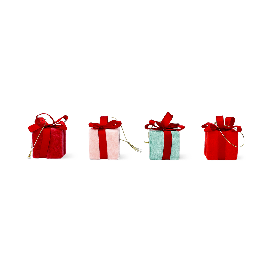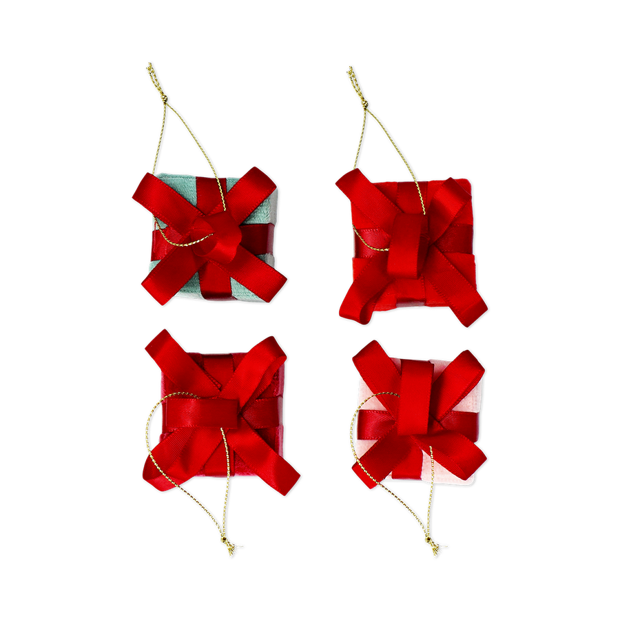 ミニサイズのプレゼントボックス型オーナメント4個セット。