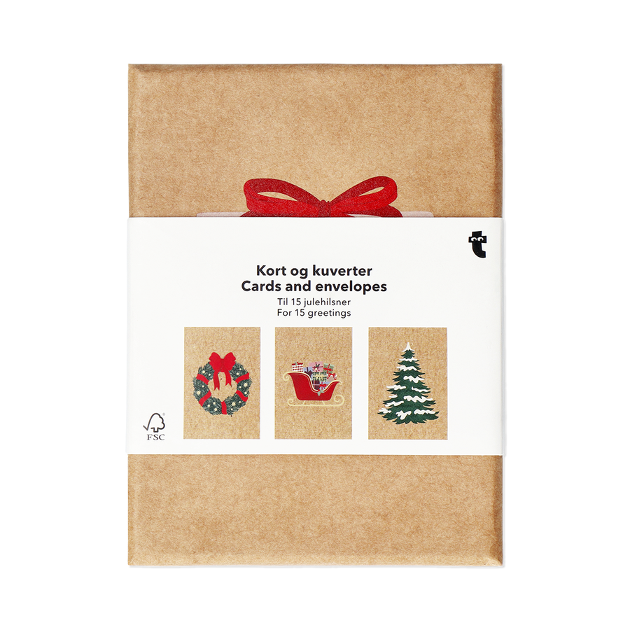 クラフト風ボックスに入った、クリスマスカードと封筒の15セット。