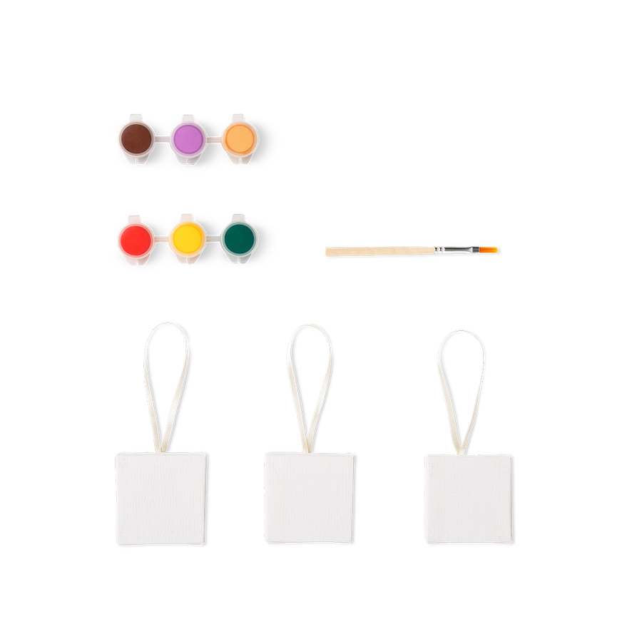 手のひらサイズの小さなキャンバスに、自由に描いて楽しめるDIYオーナメント3枚セット。