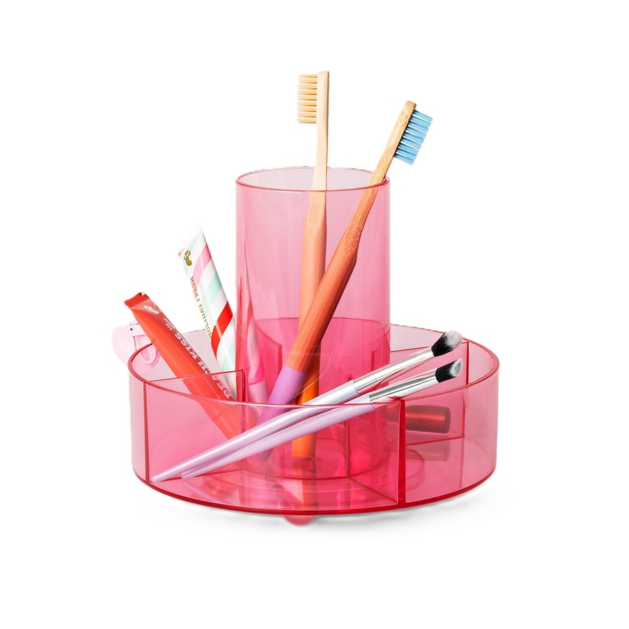 毎日のビューティーアイテムをすっきり整理できる、丸型のアクリルコスメオーガナイザー。
