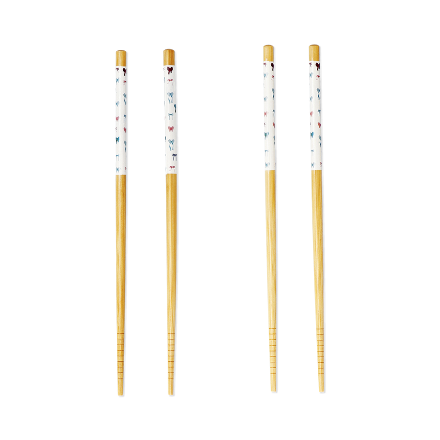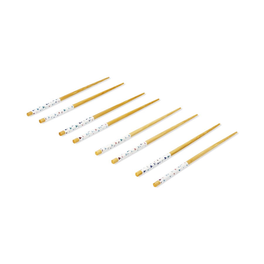 ナチュラルな竹素材に繊細なプリントが施された、お箸4膳セット。