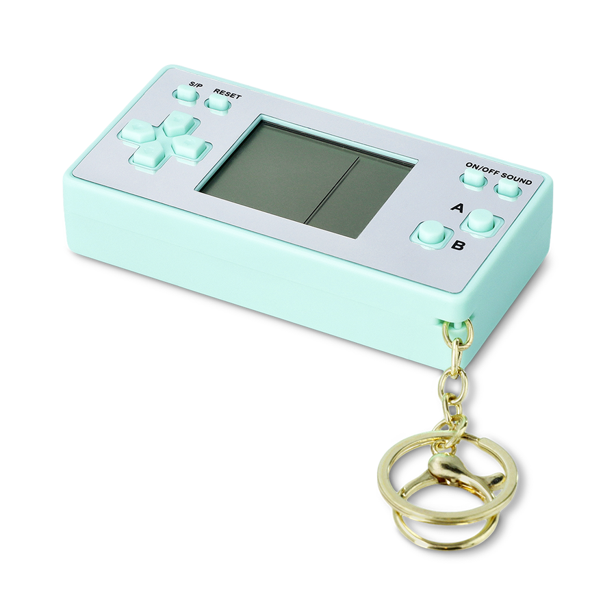 レトロなブロックゲームが楽しめる、キーチェーン付きのミニポータブルゲーム機。