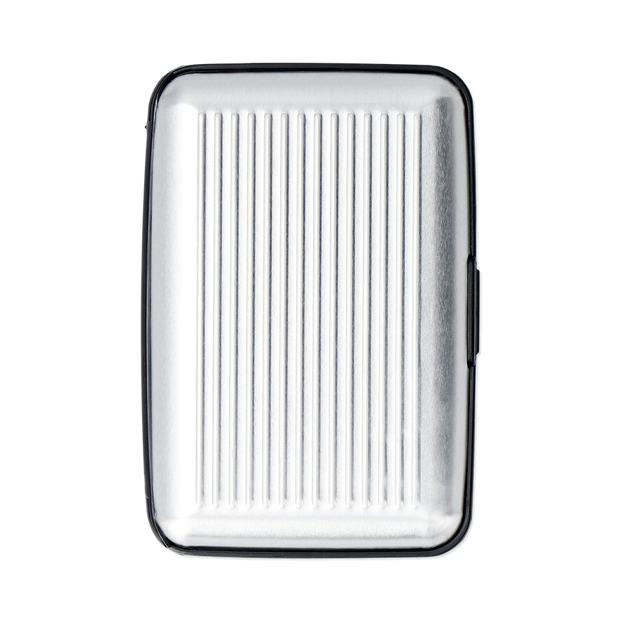 スタイリッシュなシルバーのメタル製カードホルダー。