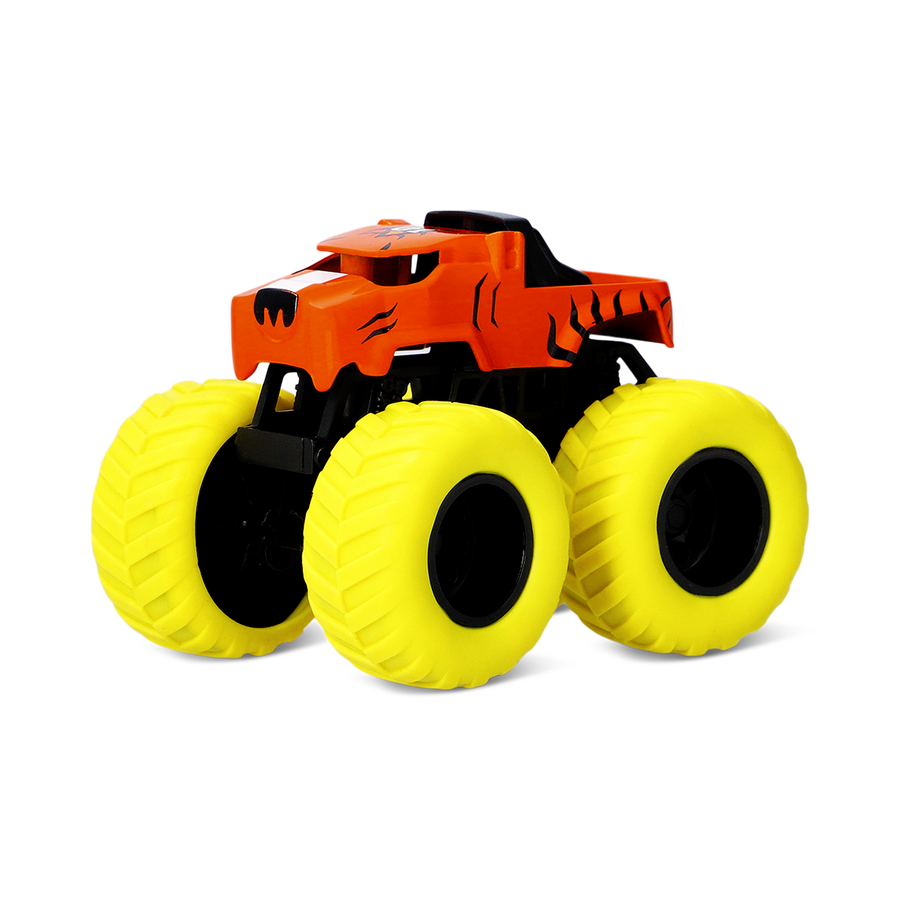 大きなタイヤと迫力のデザインが魅力のイエローモンスタートラック。