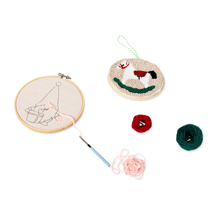クリスマス気分を楽しめる、ハンドメイドのパンチニードル刺繍セット。