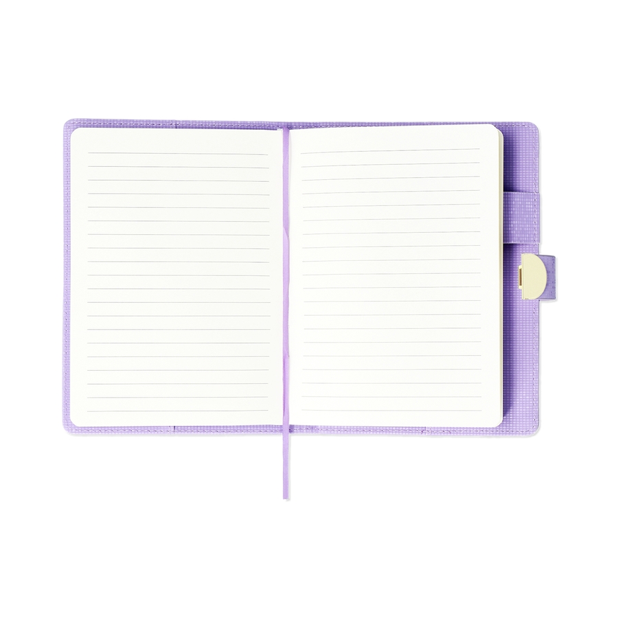罫線入りのページと、柔らかなパープルの色合いのスマートなカバーが特徴です。
