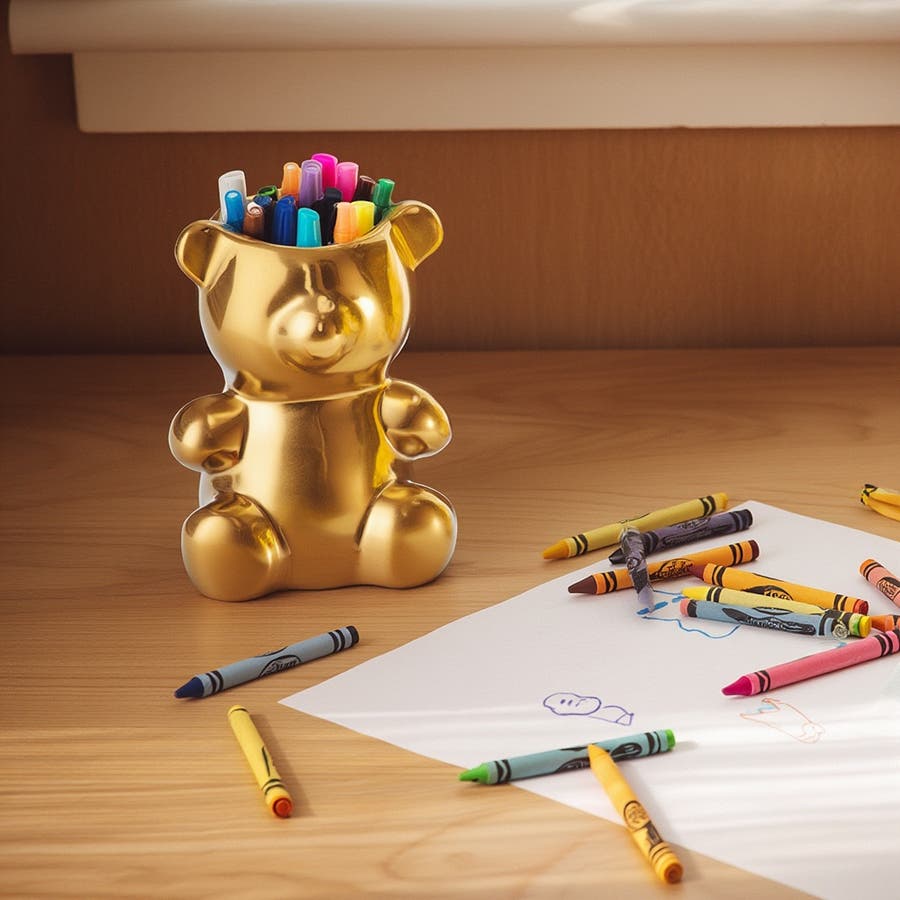 ゴールドのクマ型ペンホルダーで、デスクに輝きを添えましょう。