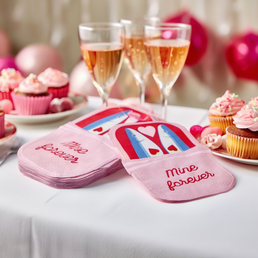 竹紙製のこのナプキンは、バレンタインデーの甘いひねりを加えた遊び心のあるデザインです。