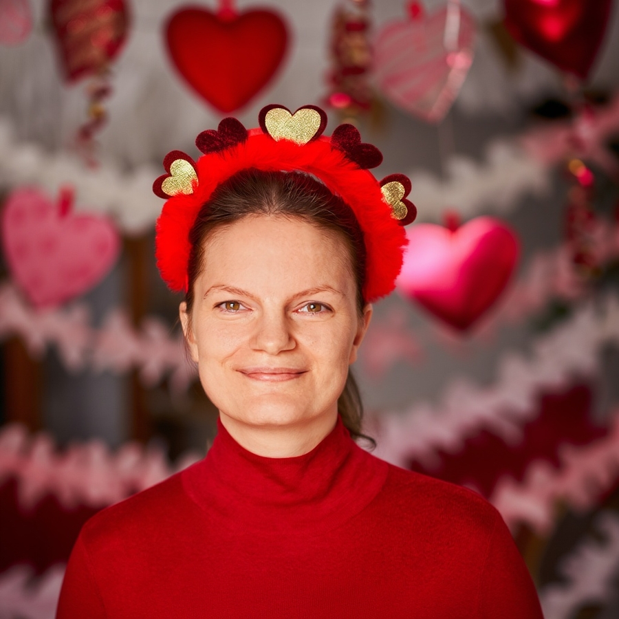 バレンタインデーの装いに、遊び心とロマンティックな雰囲気をプラスしたいなら、このチャーミングなハートのカチューシャがおすすめです。