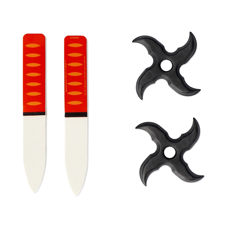 手裏剣2個と短刀2本は、大胆なマルチカラーデザインで作られており、どんな仮装にも冒険心を誘います。