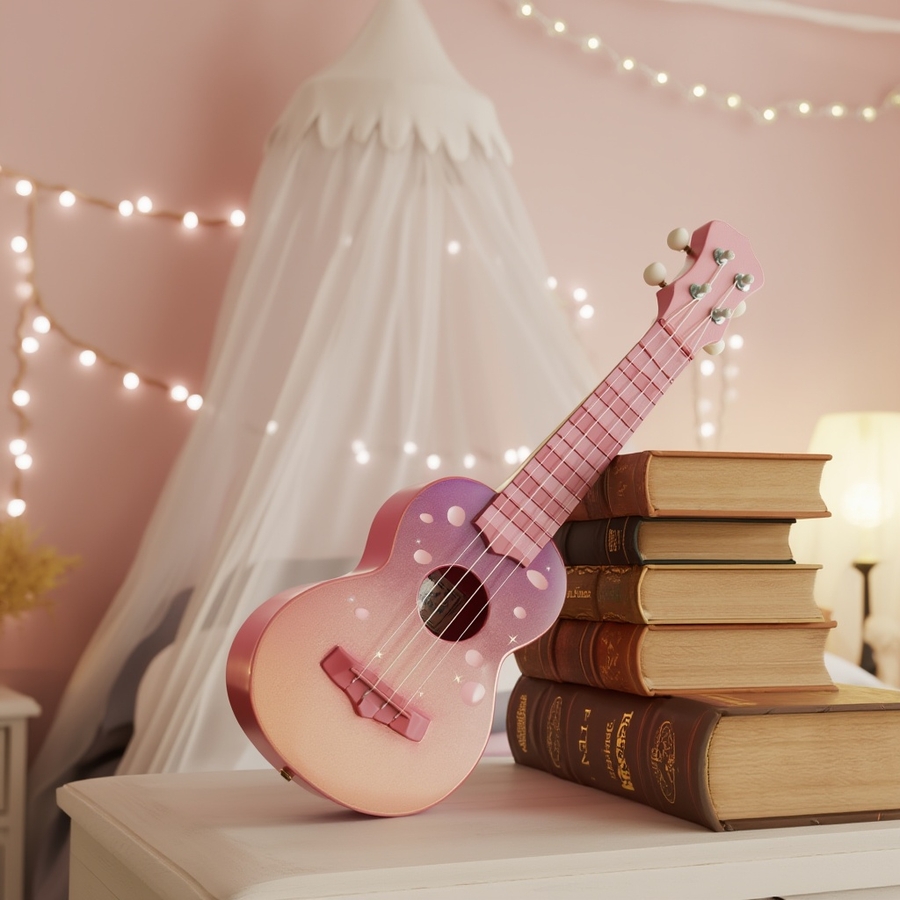 魔法の森をイメージした柔らかなピンクのデザインが魅力的なウクレレで、遊び心に音楽のマジックを添えましょう。