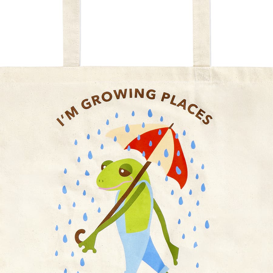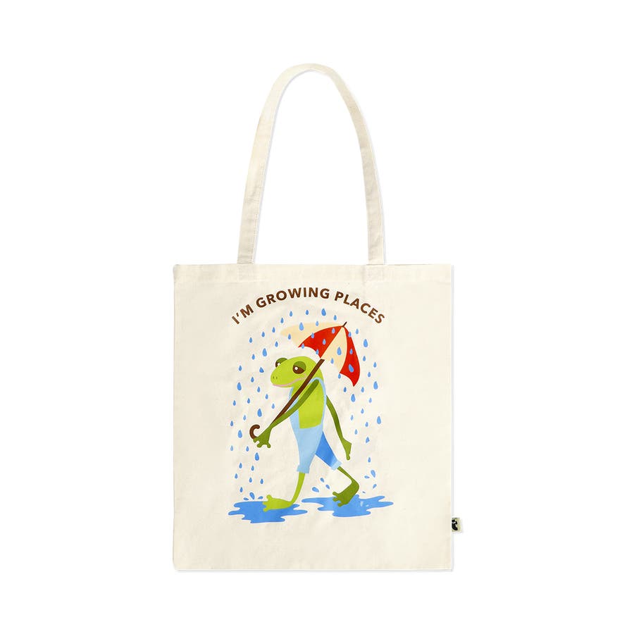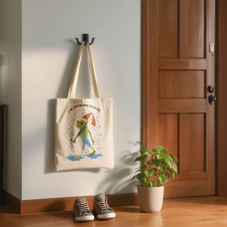 カエルのモチーフのトートバッグは、毎日のルーティンに遊び心をプラス。