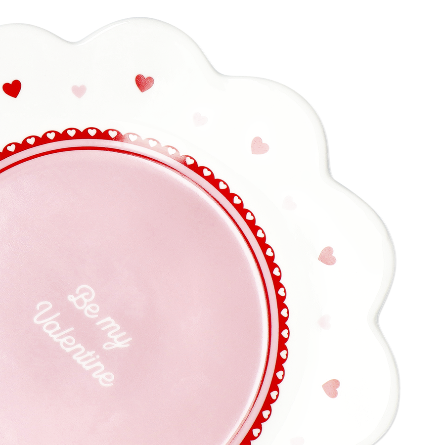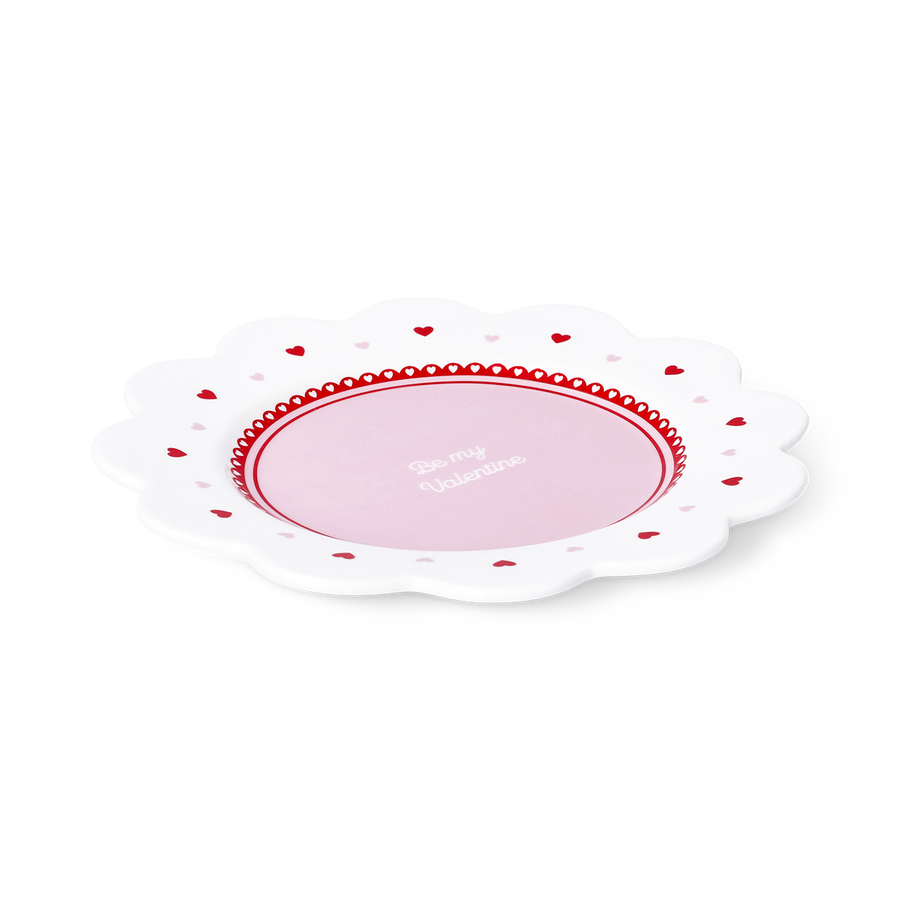 繊細なハートとスカラップ模様の縁が特徴的な、チャーミングなサービングプレートで、スイーツを盛り付けてみませんか。