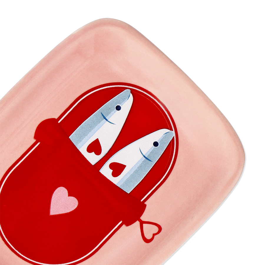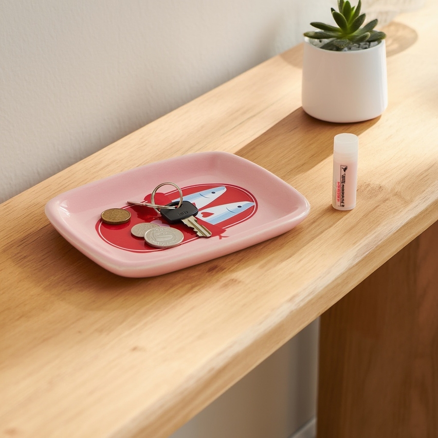 遊び心のあるサーディンのデザインが特徴の、小さなピンクのトレーで、空間を明るく演出しましょう。