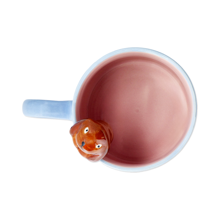 柔らかなブルーの外側と温かみのある内側のコントラストが美しく、ハンドルにあしらわれた愛らしい3Dダックスフントのディテールが、一口飲むごとに喜びをプラスします。