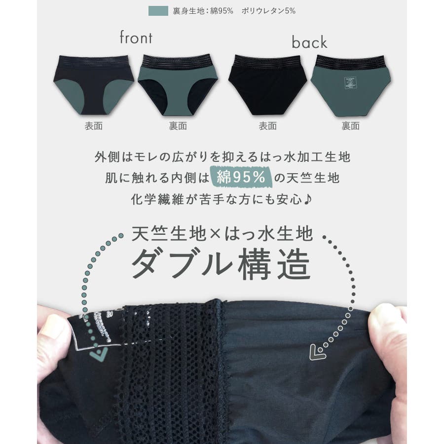 量が少ない時やおりものが多い時などにも安心してお使いいただけます。通常のショーツとしても問題無くお使い頂けます。