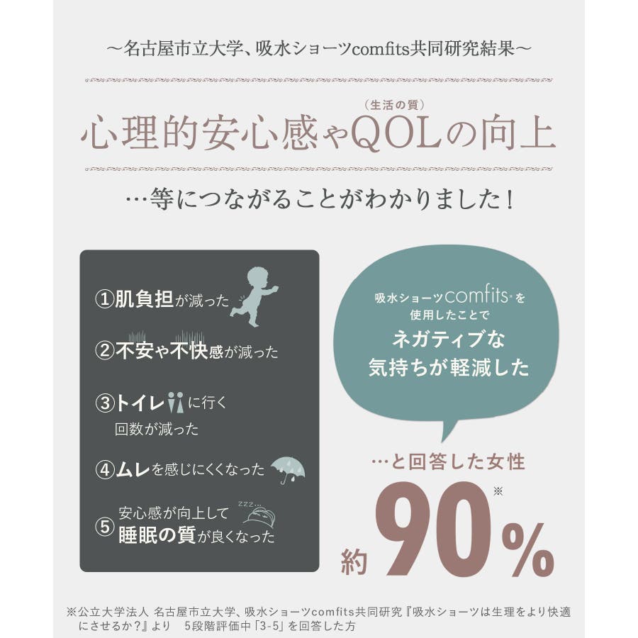 ◆商品特徴 : 363日穿きたくなるような進化した吸水型サニタリーショーツcomfits Standard(コンフィッツ スタンダード) ≪企画:日本 生産:中国≫