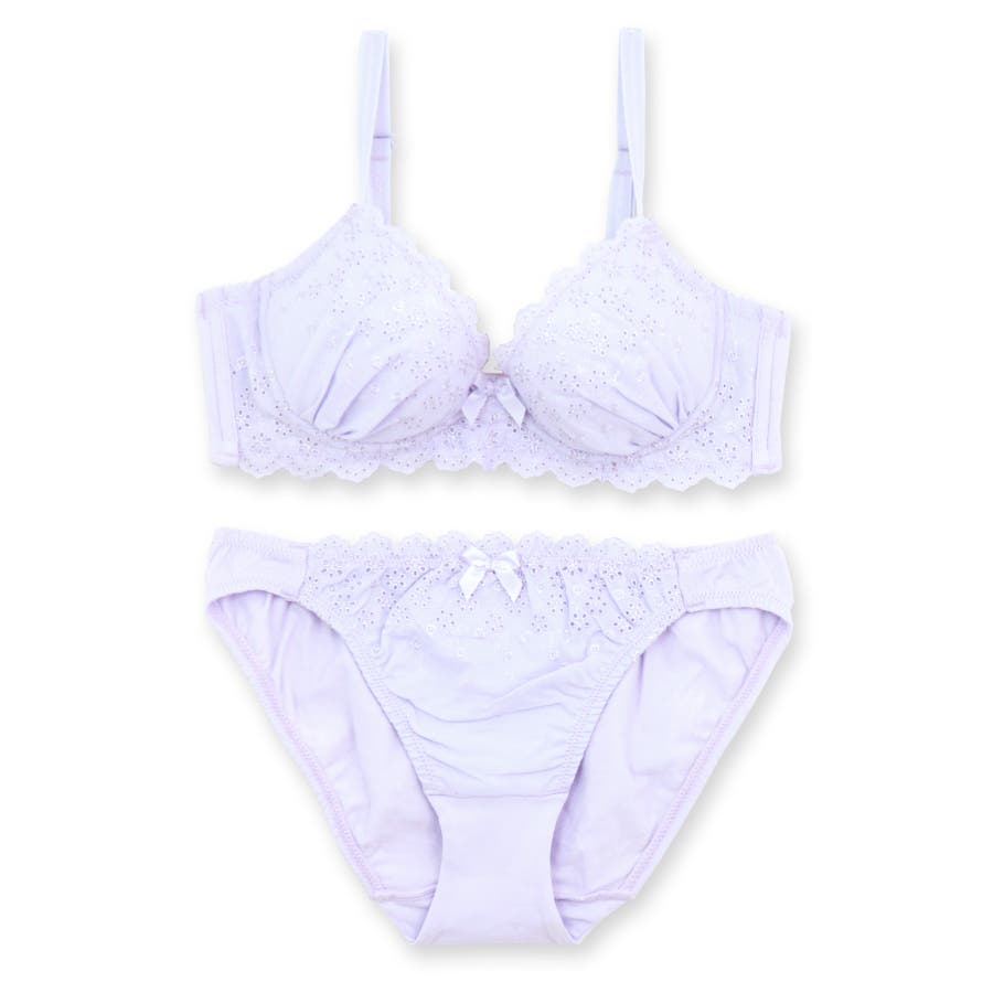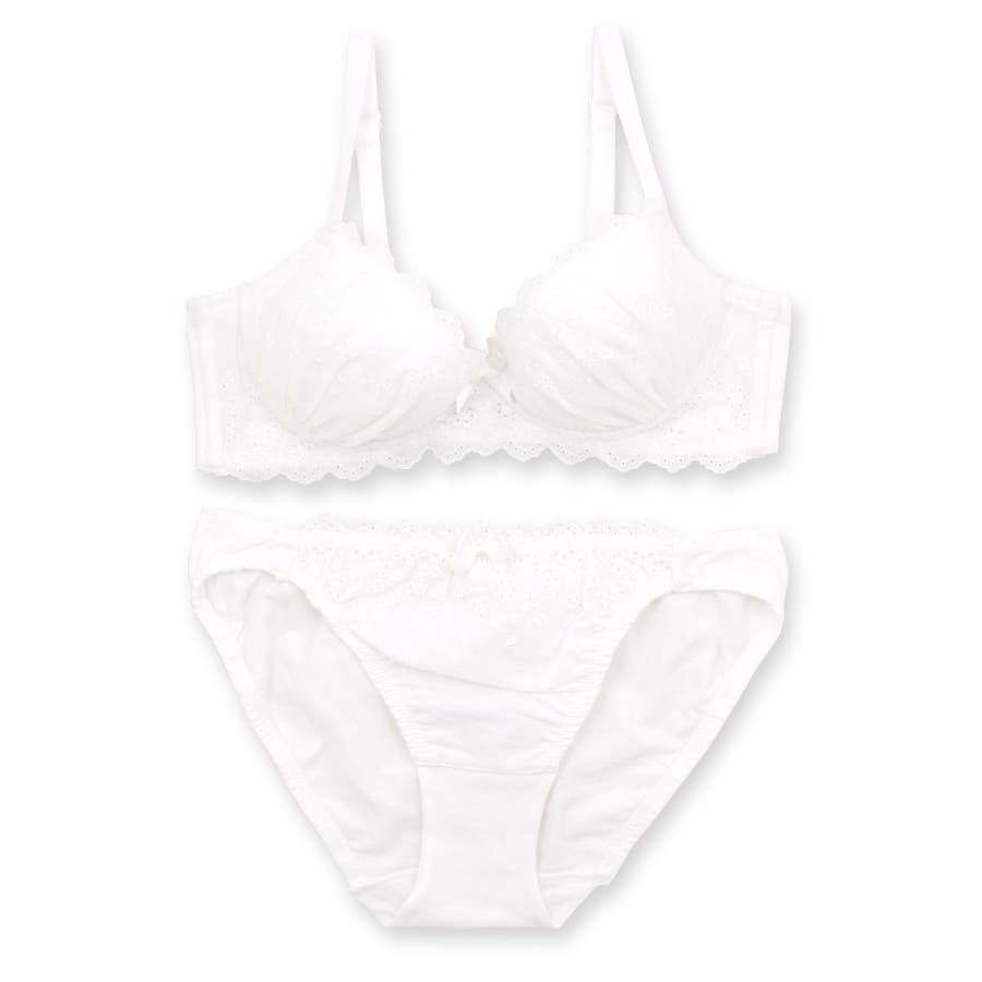 ノンワイヤーのコットンレースのブラ&ショーツSET素肌を優しく包む配慮がいっぱい…