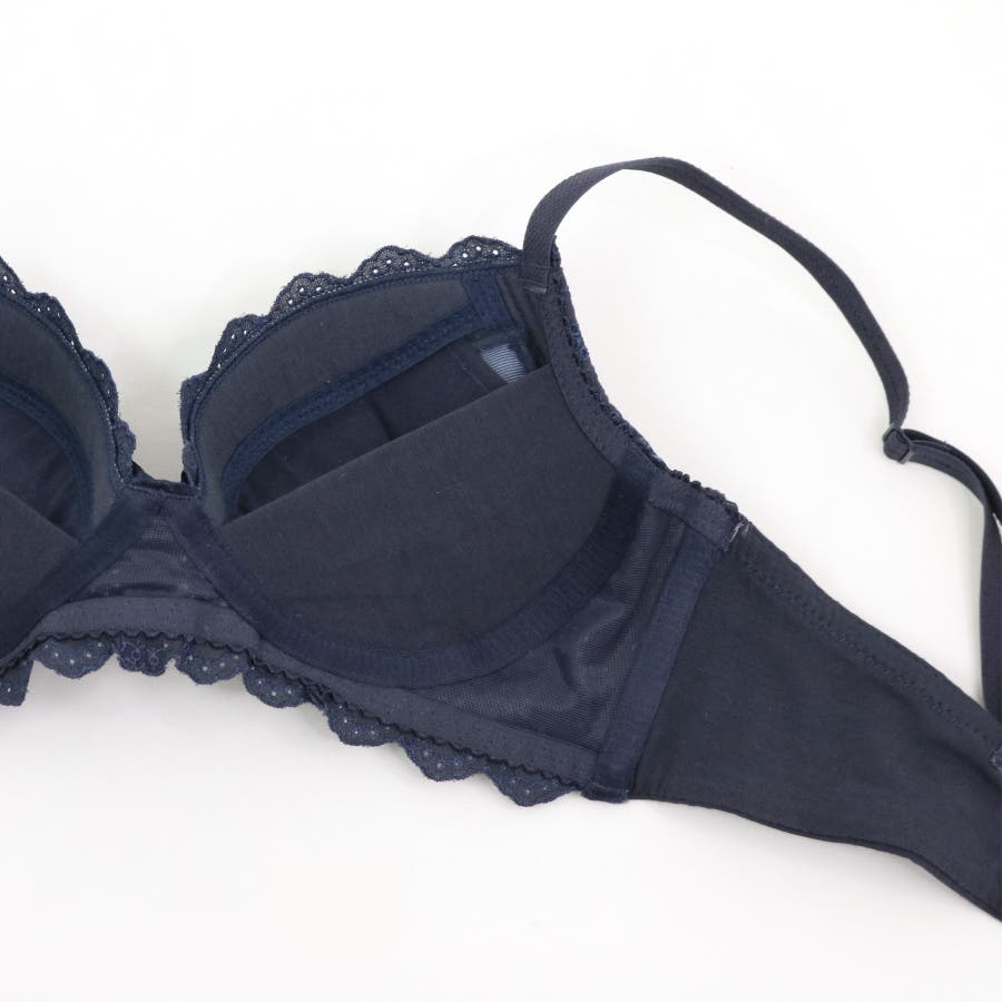 ゴムが直接当たらないよう、カップ下以外のゴムを綿の含有量の高い生地で包み込んだ肌に優しい設計です。