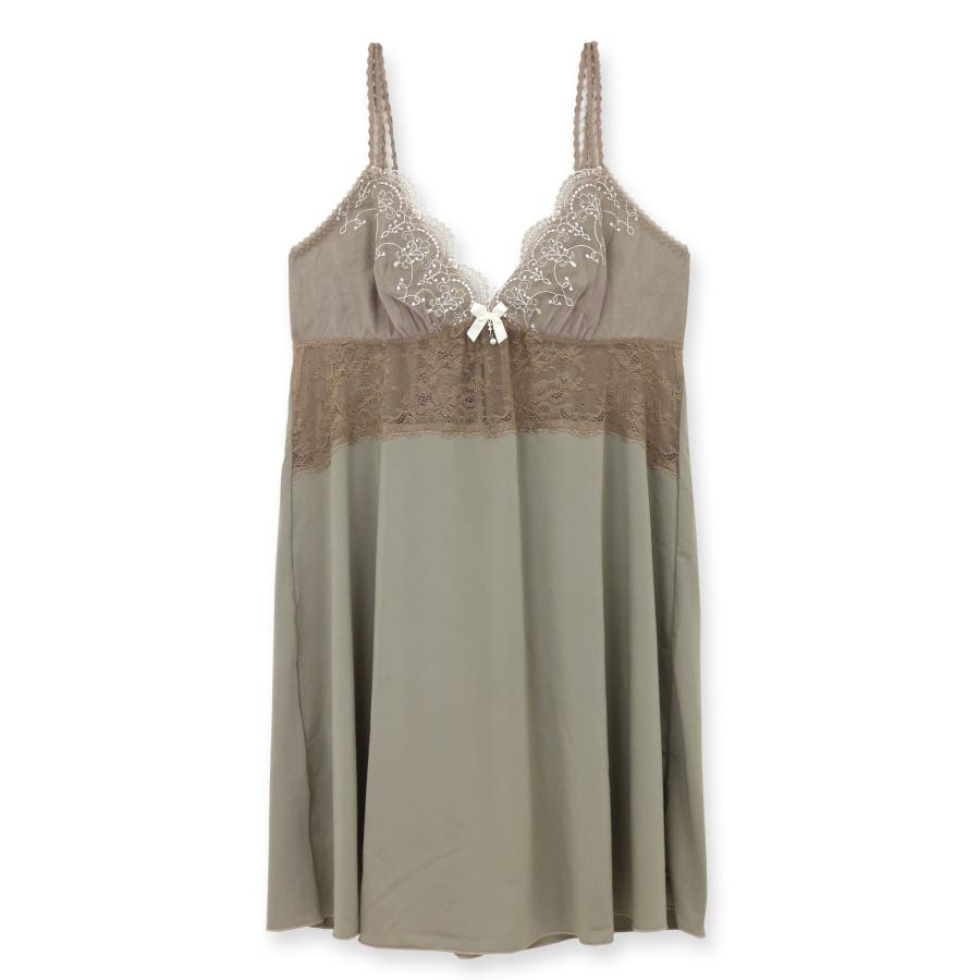 胸元の切り返しにレースが施されたフェミニンなスリップ。