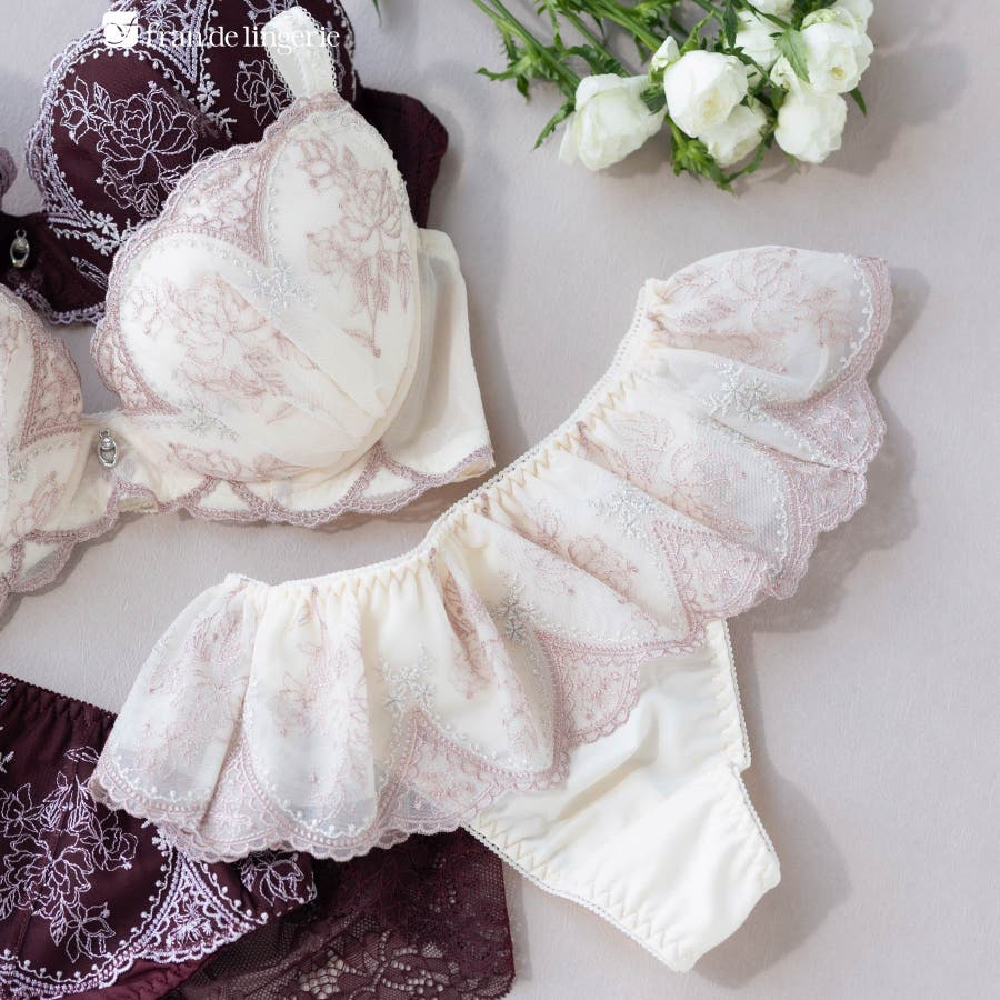 アンティークのようなクラシカルでロマンチックな刺繍レースを纏うランジェリー。さり気なくラメ糸が使われ上品な華やかさがプラスされ、特別感を演出してくれます。