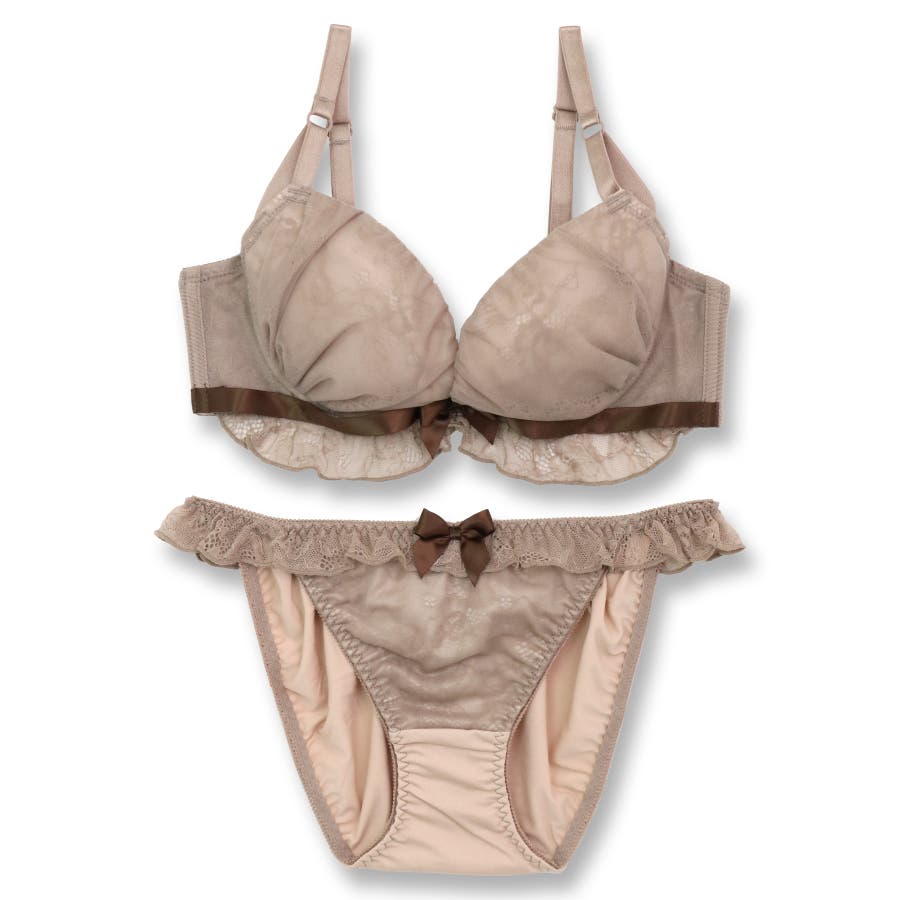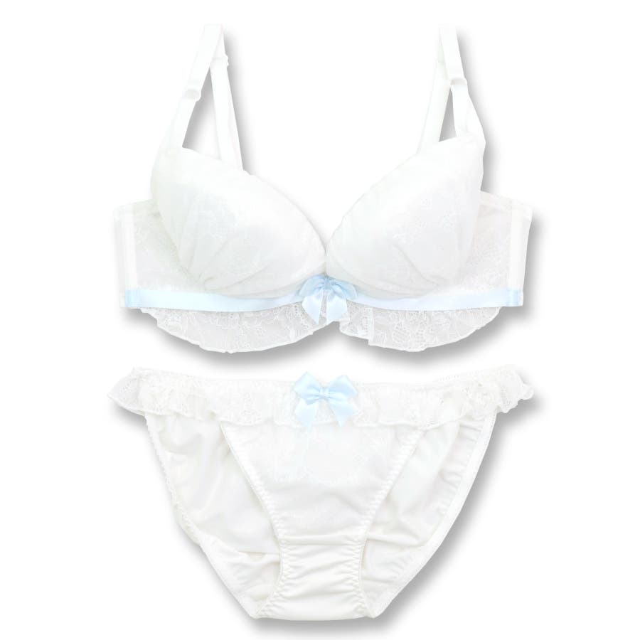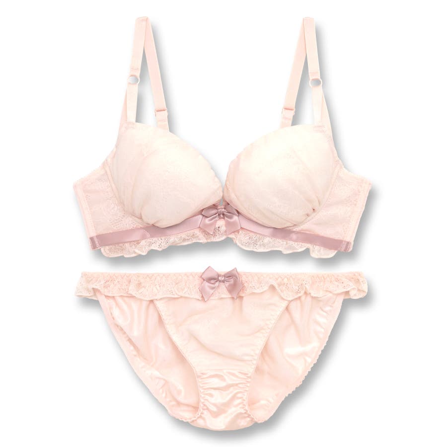 ロマンチックなブラ&ショーツSETナチュラルボリューム×寄せ胸 「シアーベール …