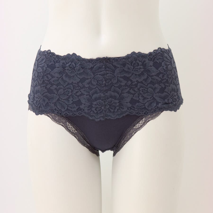 ヒップ中心にシャーリング&綿込み細幅レースが嬉しい。