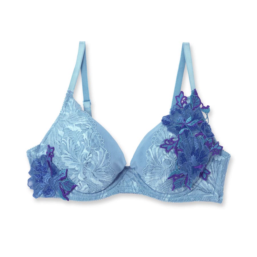 さり気ないキラメキが目を引くフラワーモチーフが印象的なランジェリー。