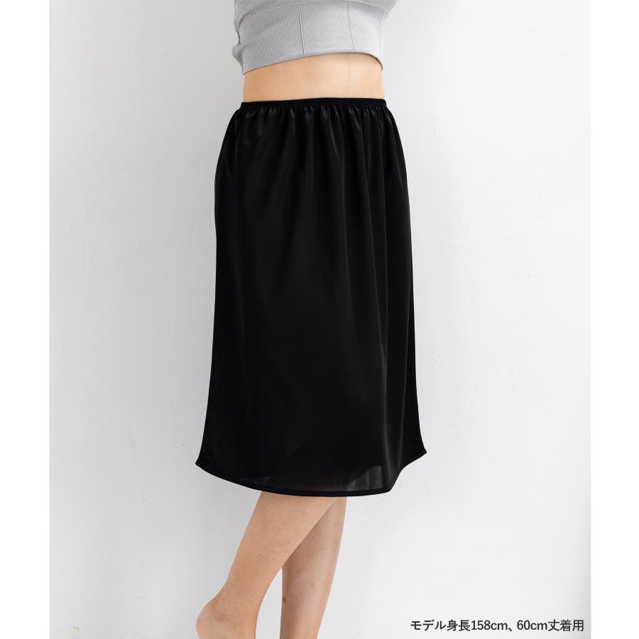 無駄な装飾を省いたシンプルなペチコート。Mから3LGまでのサイズ展開、選べる丈が嬉しい。