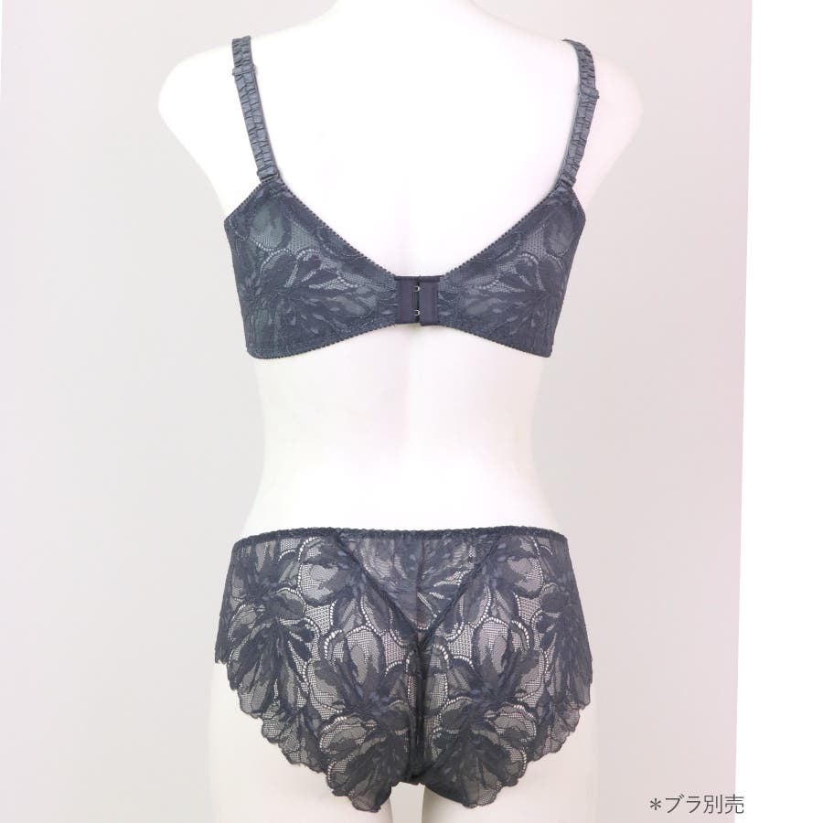 透け感が美しいバックレースショーツは、伸縮性の高い柔らかな面でヒップにフィットするので、アウターにも響きにくい機能性も有り