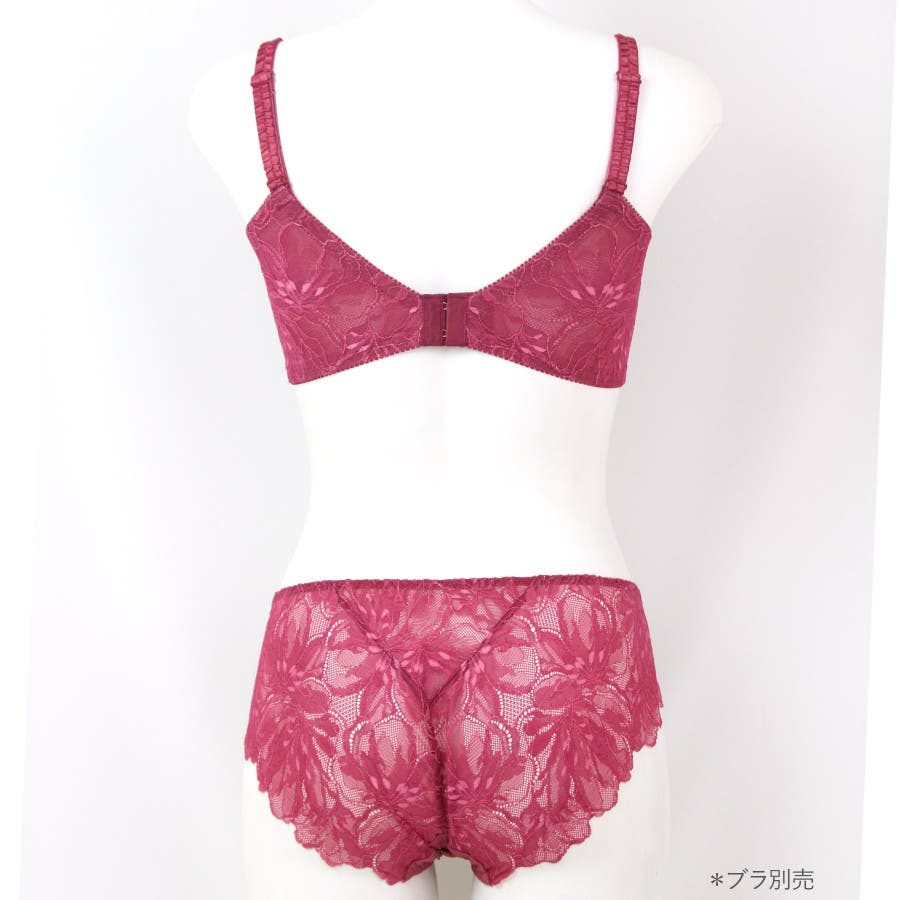 透け感が美しいバックレースショーツは、伸縮性の高い柔らかな面でヒップにフィットするので、アウターにも響きにくい機能性も有り