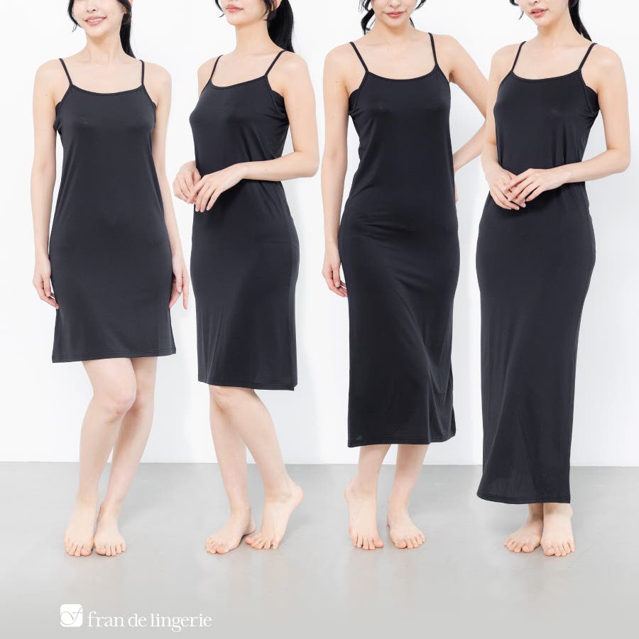 ワンピースインナーとして一枚は持っておきたいシンプルなキャミソール。普段のお洋服に合わせて丈が選べます。