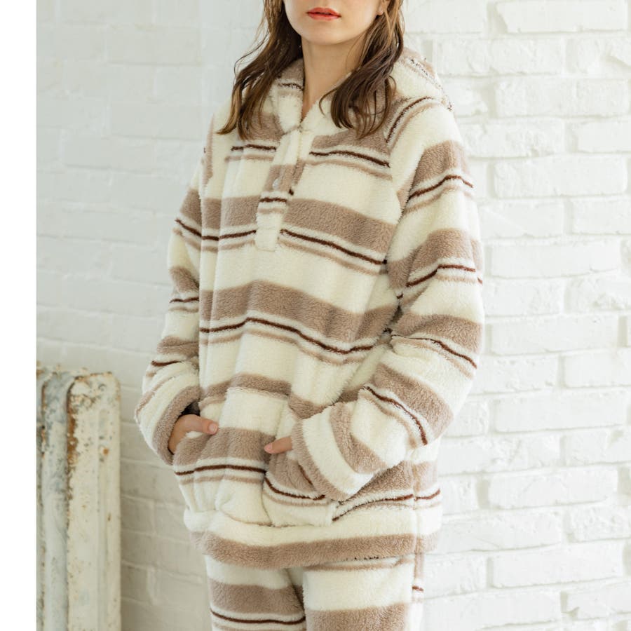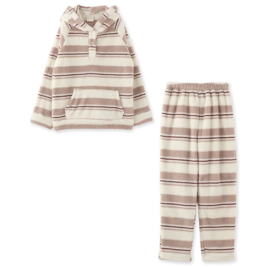 フードが首まわりをしっかりと温めてくれるフーディープルオーバーとパンツのセットアップ。