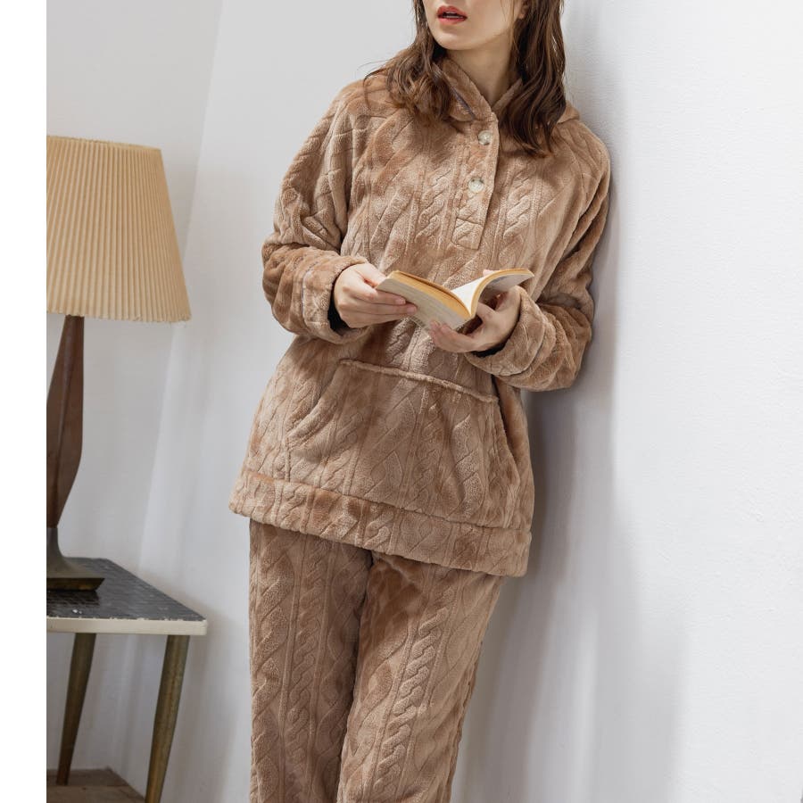 memory fleece メモリーフリースプルパーカー上下セット(アラン編み