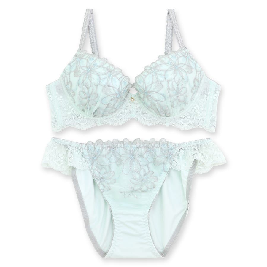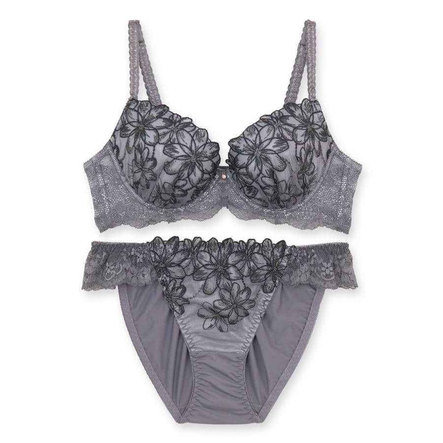 マーガレットをモチーフにしたフラワー刺繍レースのブラ&ショーツSET。きらめくラメ刺繍がいつもの日々をちょっとだけ特別なものにしてくれます。
